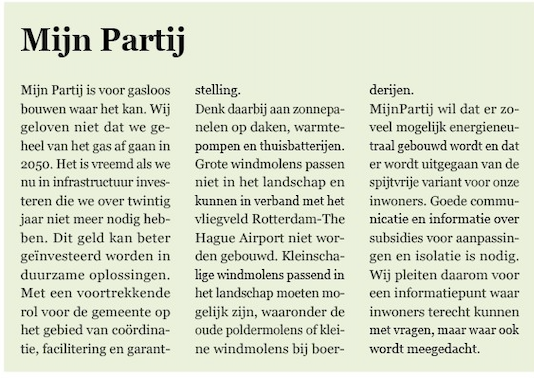 Ook hier geldt dat we moeten kijken naar haalbare en betaalbare oplossingen, waarbij de gemeente vooral een voortrekkende rol heeft op het gebied van coördinatie, facilitering en garantstelling. De inwoners hebben behoefte aan een informatiepunt waar daadwerkelijk met ze wordt meegedacht.